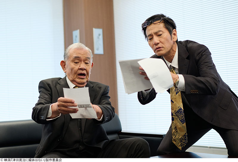 解禁された『津田寛治に撮休はない』新規場面写真。津田寛治さんが演じる俳優・津田寛治(右)と、渡辺哲さんが演じる俳優・渡辺哲