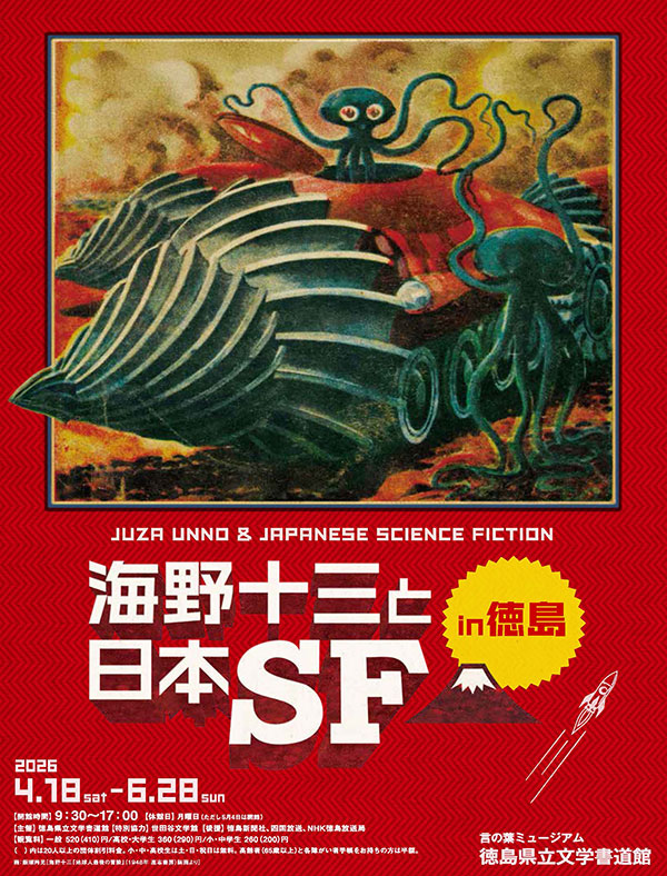 この特別展は、昨年2025年に東京の世田谷文学館で開催され好評を博したコレクション展を海野十三の出身地である徳島に場所を移して開催するもので、その溢れるイマジネーションで「日本SFの祖」と呼ばれる海野十三の軌跡や海野十三に影響を受けたのちの作家たちの仕事を紹介するとともに、海野十三と徳島の関わりにもスポットを充てていきます。
